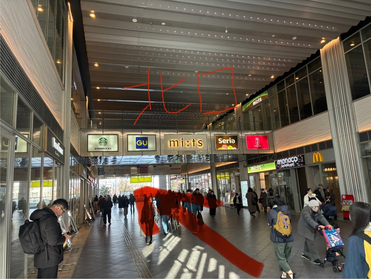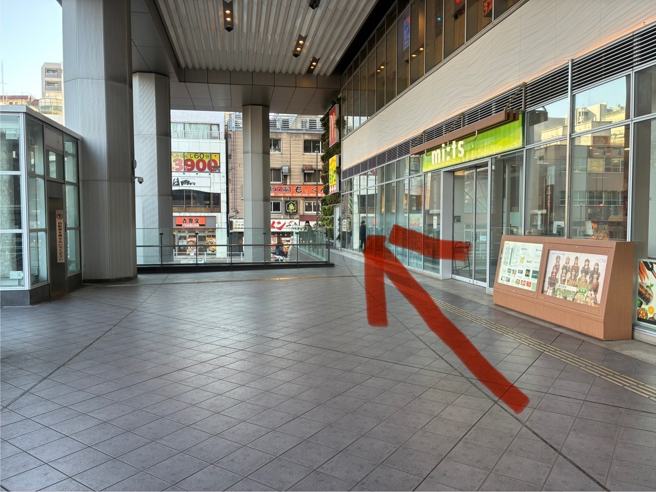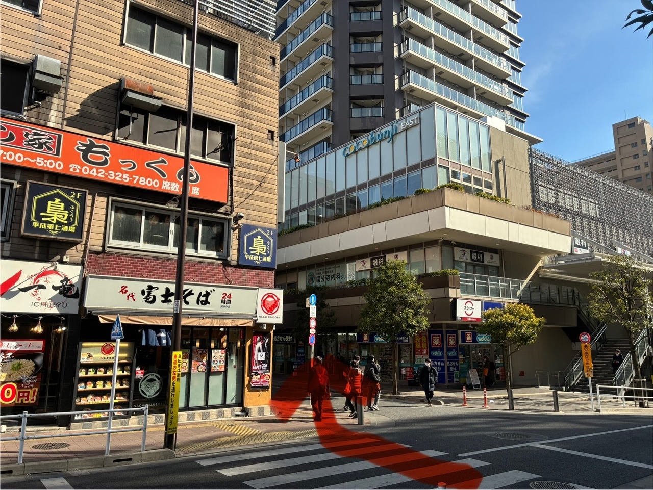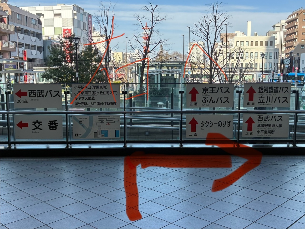 ①国分寺駅改札を左へおすすみください ②ロータリーが見えたら、右へおすすみください