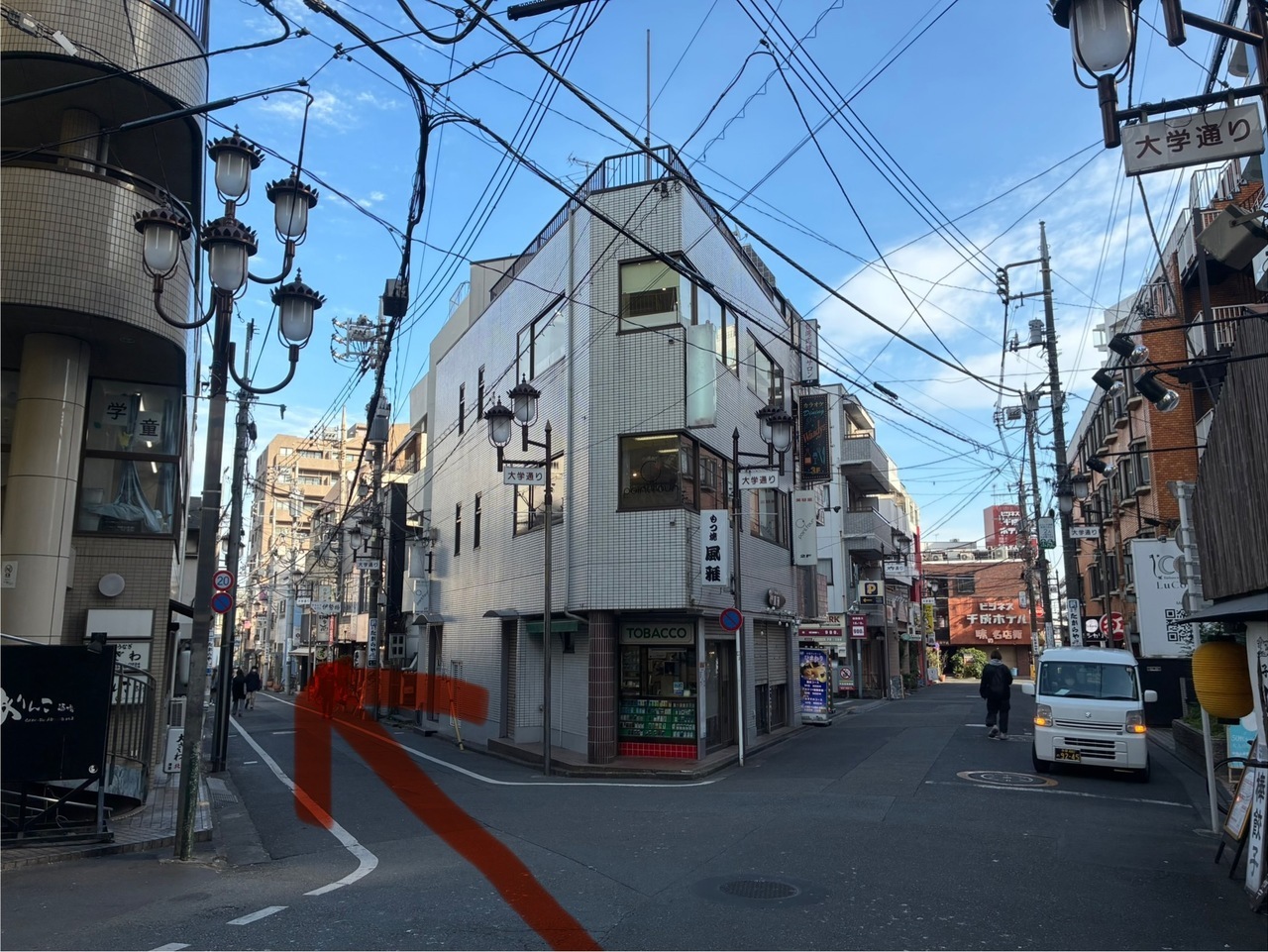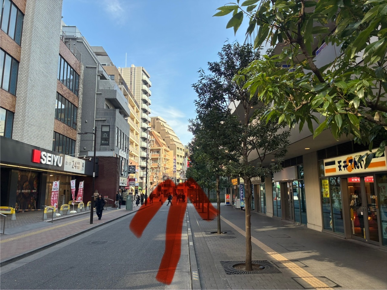 ⑤西友のある通りを直進してください。 ⑥※3差路になります、斜めにおすすみください